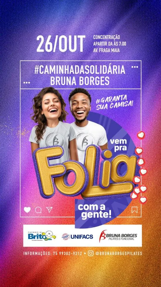 Esporte Caminhada Solidária Bruna Borges 2025: vem pra folia no próximo dia 26