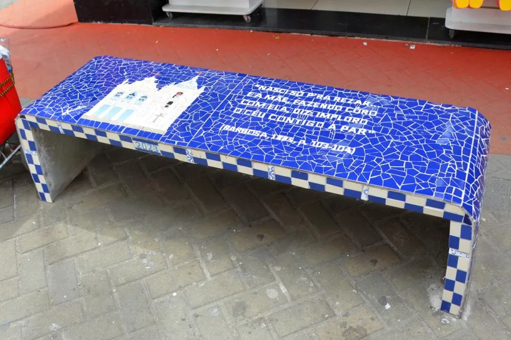 “Fui elaborando o trabalho aproveitando as horas vagas. Se fosse um trabalho contínuo naturalmente demoraria menos”, explicou. A professora Gabriele Alexandre atesta que o trabalho é demorado devido as etapas que são cumpridas a partir da escolha do tema - de acordo com a ideia central que é homenagear Sales Barbosa. Depois é feito o desenho e projetado no mosaico, colocado sobre uma tela. A etapa final consiste na fixação da tela no banco, mediante o uso de argamassa.